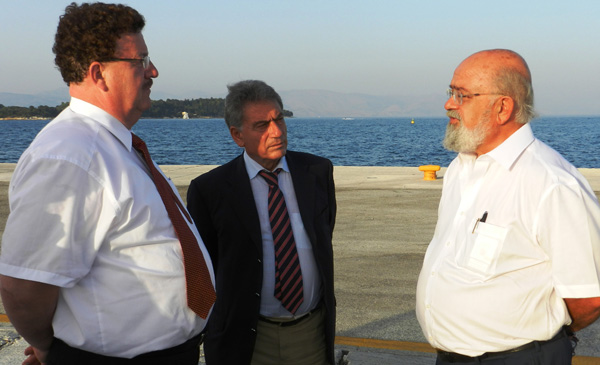 Ο κ. Fuchtel, με τη συνοδεία του Περιφερειάρχη και των Αντιπεριφερειαρχών, Σωτήρη Κουρή και Γιάννη Μαλακάση, επισκέφτηκε το χώρο του λιμανιού για να δει από κοντά το έργο της προβλήτας των κρουαζιερόπλοιων και συνομίλησε με τον Πρόεδρο και Διευθύνοντα Σύμβουλο του Οργανισμού Λιμένος Κέρκυρας, Σωτήρη Βλάχο.