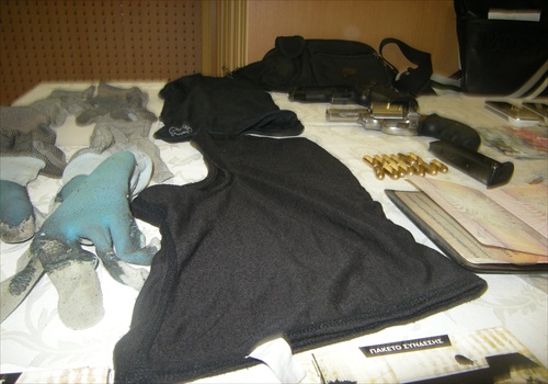 Το αυτοκίνητο με το οποίο κινούνταν ήταν κλεμμένο από την Δάφνη Αττικής και μέσα σε αυτό βρέθηκαν ένα πιστόλι, ένα περίστροφο , κουκούλες και γάντια. Τόσο το διαβατήριο, όσο και η άδεια οδήγησης του ενός εκ των δραστών ήταν πλαστά.