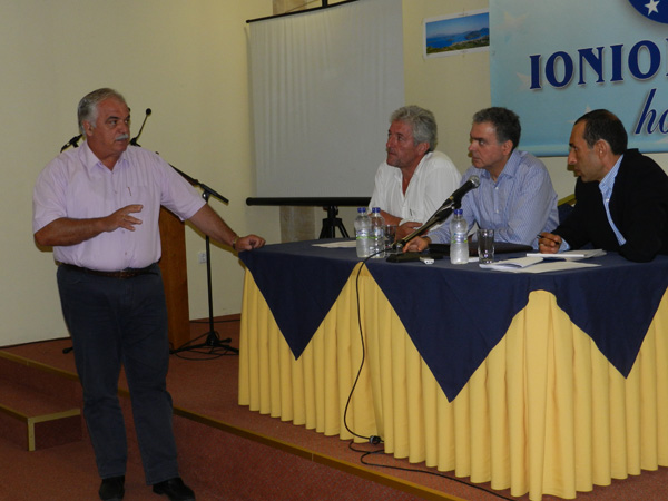 Ακολούθησε στη συνέχεια ο χαιρετισμός του Δημάρχου και η συζήτηση με τους τοπικούς φορείς και επιχειρηματίες, κατά τη διάρκεια της οποίας αμφισβητήθηκε από αρκετούς ο ρόλος αυτών που εκπροσωπούν την Λευκάδα στις τουριστικές εκθέσεις που γίνονται για την προβολή του νησιού. Δεν ήταν λίγοι εκείνοι που ενστερνίστηκαν την άποψη του κ. Σκιαδαρέση που χαρακτηρίζει τους συμμετέχοντες στις εκθέσεις επαγγελματίες τουρίστες και όχι για επαγγελματίες τουρισμού! Ο κ. Μιχαηλίδης παραδέχτηκε ότι πράγματι οι εκθέσεις έτσι όπως διοργανώνονται μέχρι σήμερα, αποτελούν ένα τεράστιο πάρτι, ενώ θα πρέπει, όπως είπε οι άνθρωποι που τις εκπροσωπούν να είναι καταρτισμένοι. Κάποιοι ανέφεραν ότι οι δημόσιοι υπάλληλοι είναι ανεπαρκείς για την εκπροσώπηση του νησιού στο εξωτερικό.
