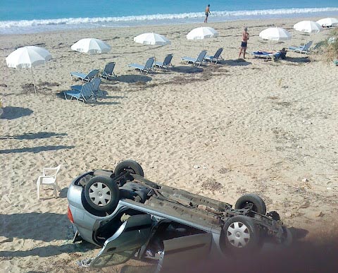 Αυτοκίνητο προσγειώθηκε σε παραλία