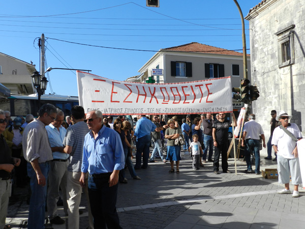 Τον λόγο πήρε στη συνέχεια ο πρόεδρος του Ιατρικού Συλλόγου κ. Σταύρος Γληγόρης, ο οποίος απευθυνόμενος στους φορείς και στους πολίτες που πήραν μέρος στην απεργία, παρουσίασε με τη σειρά του την δυσχερή κατάσταση της χώρας και των πολιτών της, εξαιτίας της αλόγιστης λήψης των συνεχόμενων δεινών μέτρων.