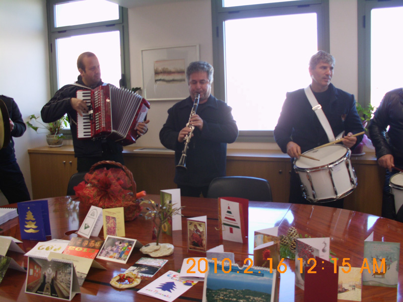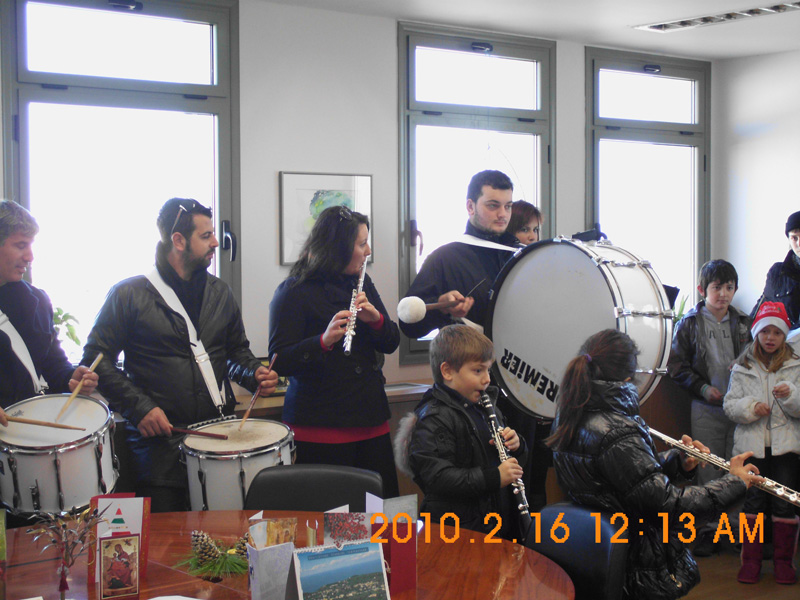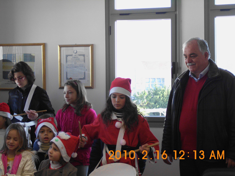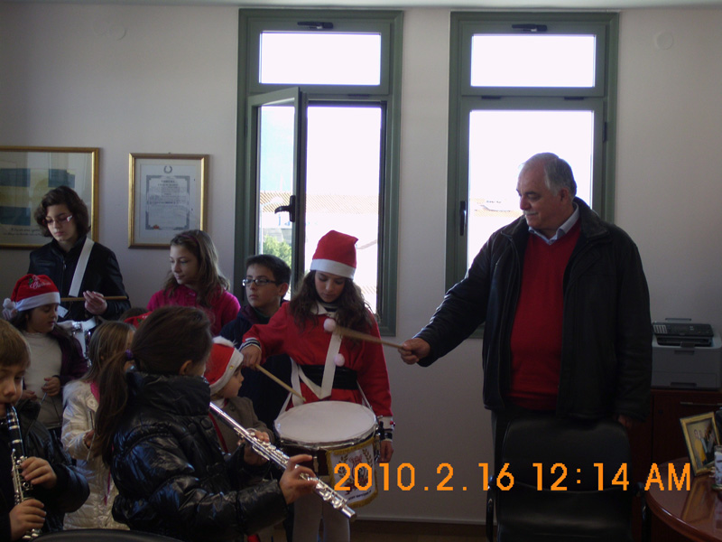 Την Παρασκευή τον Δήμαρχο επισκέφτηκαν και μαθητές του Μουσικού σχολείου του νησιού, οι οποίοι τραγούδησαν επίσης τα κάλαντα, συνοδεία των μουσικών οργάνων.
