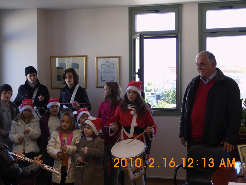 Ο Δήμαρχος τους δέχτηκε με προθυμία και αφού άκουσε τα κάλαντα, ευχήθηκε σε παιδιά και μεγάλους χρόνια πολλά με υγεία και αγάπη.