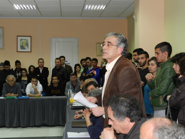 Τον λόγο πήρε στη συνέχεια ο πρόεδρος των φοιτητών που ζήτησε την στήριξη του Δημοτικού Συμβουλίου στις κινητοποιήσεις τους, οι οποίες έχουν ήδη ξεκινήσει προχωρώντας ήδη σε κατάληψη του κτηρίου, που αποφασίστηκε στη σημερινή τους συνέλευση. Αποφασισμένοι να βγουν στους δρόμους είναι οι φοιτητές όπως ανακοίνωσε έτσι ώστε να μην αλλάξει γνωστικό αντικείμενο η σχολή τους και για να μην μετακινηθούν από την Λευκάδα. Δεν παρέλειψε να αναφέρει την απροθυμία του ΚΤΕΛ να παραχωρήσει δωρεάν πούλμαν στους φοιτητές ώστε να παρευρεθούν στο συλλαλητήριο που πραγματοποιήθηκε στην Αθήνα στις 14 Φλεβάρη, τη στιγμή που άλλες επαρχιακές πόλεις πρόσφεραν δωρεάν μεταφορά στους φοιτητές ώστε να παραστούν στις κινητοποιήσεις.