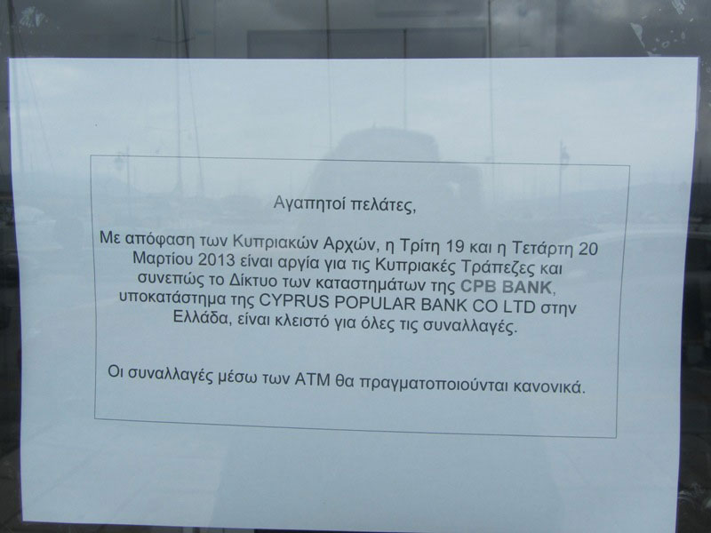 Θα πρέπει να πούμε βέβαια ότι πολλοί επαγγελματίες που κάνουν τις εμπορικές συναλλαγές τους με τις συγκεκριμένες τράπεζες τώρα πρέπει να περιμένουν έως ότου ανοίξουν και πάλι τις πόρτες. Στην Ελλάδα μετράμε 250 υποκαταστήματα των Κυπριακών τραπεζών, μένει τώρα να δούμε ποιο σχέδιο θα αποδεχτεί τελικά η Κύπρος και τι μπορεί να σημαίνει αυτό για την Ελλάδα.
