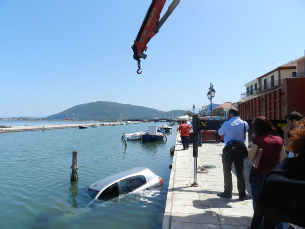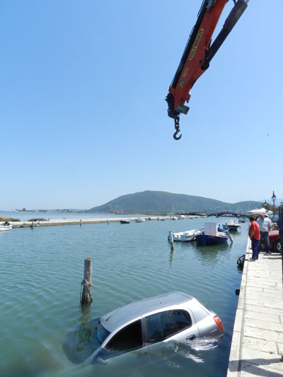 Άμεσα στο σημείο έφθασαν οι Αρχές και στη συνέχεια ένας γερανός, όπου κατάφερε με τη βοήθεια δυτών να το ανασύρει.