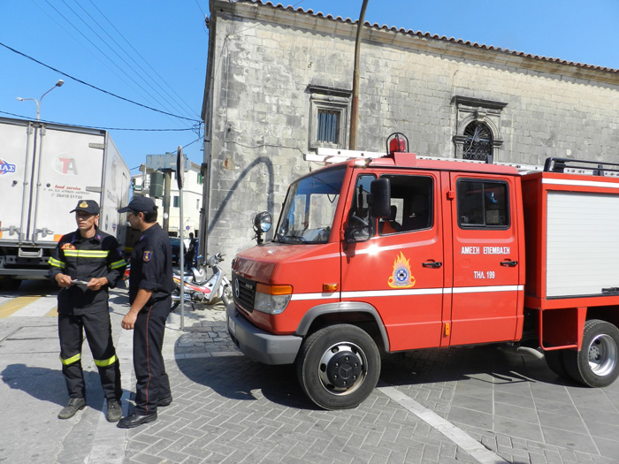 Σήμερα το πρωί, λοιπόν, ένα πυροσβεστικό όχημα στάθμευσε έξω από την εκκλησία του Αγίου Μηνά, ενώ δύο πυροσβέστες, κρατούσαν ενημερωτικά φυλάδια με οδηγίες για την πρόληψη πυρκαγιών, τα οποία μοίραζαν στους περαστικούς.