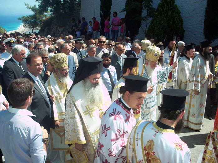 Πλήθος ανθρώπων από όλη την Ελλάδα κατέφθασε στο μοναστήρι της πολιούχου του νησιού, για να καταθέσει στη σεπτή εικόνα της Παναγίας τις προσευχές του, αλλά και να ακούσει τον λόγο του θεού, μέσα από το κήρυγμα του επίτιμου προσκεκλημένου Σεβασμιωτάτου Αρχιεπισκόπου Αθηνών και Πάσης Ελλάδος Ιερώνυμου, ο οποίος χοραστάτησε και στο Μέγα Πανηγυρικό Εσπερινό, που πραγματοποιήθηκε παραμονή του εορτασμού του Αγίου Πνεύματος, συμπροσευχομένου του Σεβασμιωτάτου Μητροπολίτη Λευκάδος και Ιθάκης Θεόφιλου.