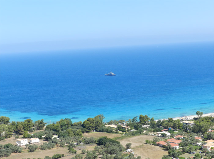 Αξιωσημείωτη ήταν η παρουσία της πυραυλάκατου που έπλεε στα ανοιχτά της Λευκάδος κατά τη διάρκεια του εορτασμού της Παναγίας Φανερωμένης.