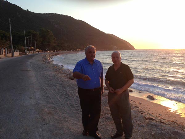 Μετά από πρόσκληση του Δημάρχου Κ. Αραβανή βρέθηκε στην Λευκάδα στις 30/6/13 ο Δ/ντής του Εργαστηρίου Λιμενικών Έργων Καθηγητής και πρώην Πρύτανης του Ε.Μ.Π. κ. Κ. Μουτζούρης και επισκέφτηκε μαζί με τον Δήμαρχο τις Δυτικές Παραλίες της Λευκάδας (Κάστρο- Μύλοι- Αη Γιάννης- Πευκούλια- Αγ. Νικήτας) για να δει και να προτείνει τεχνικές λύσεις για την αντιμετώπιση του φαινομένου της διάβρωσης και της απομάκρυνσης της άμμου.
