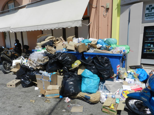Κλειστές παραμένουν οι υπηρεσίες καθαριότητας του Δήμου, που συμμετέχουν στις κινητοποιήσεις ενάντια στις απολύσεις προσωπικού, με αποτέλεσμα οι περισσότεροι κάδοι απορριμμάτων σε όλο το νησί να έχουν ξεχειλίσει από την μεγάλη ποσότητα σκουπιδιών που συσσωρεύτηκε όλο αυτό το διάστημα.