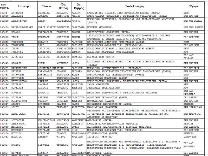 Από τους 151 επιτυχόντες