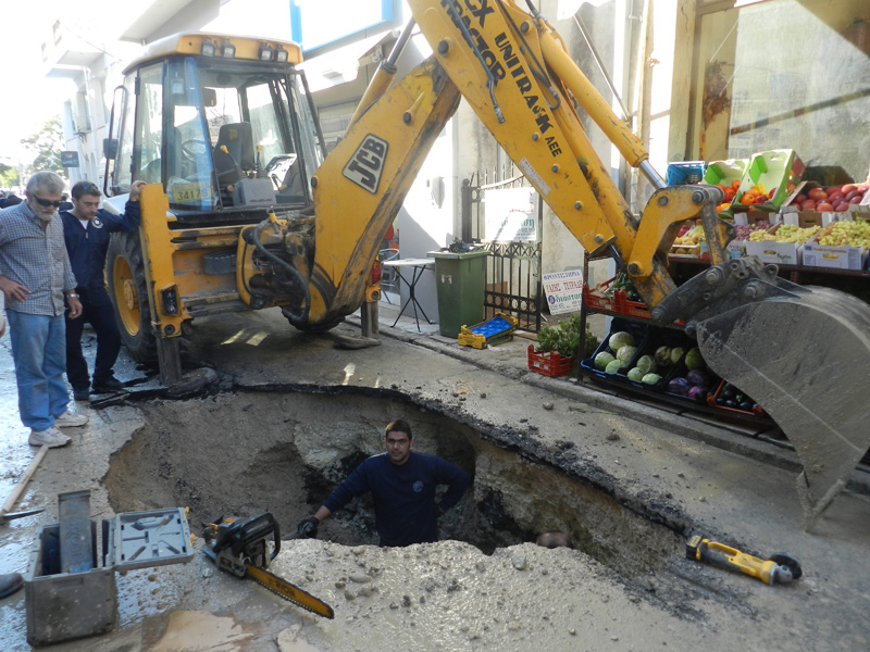 Ο κεντρικός αγωγός ο οποίος τροφοδοτεί την οδό Καραβέλα και τις γύρω περιοχές, έσπασε γύρω στις πέντε το πρωί, με αποτέλεσμα να φουσκώσει και στην συνέχεια να ανοίξει στην κυριολεξία ένα μεγάλο μέρος της συγκεκριμένης οδού και να πλημμυρίσουν οι γειτονικοί δρόμοι με νερό.