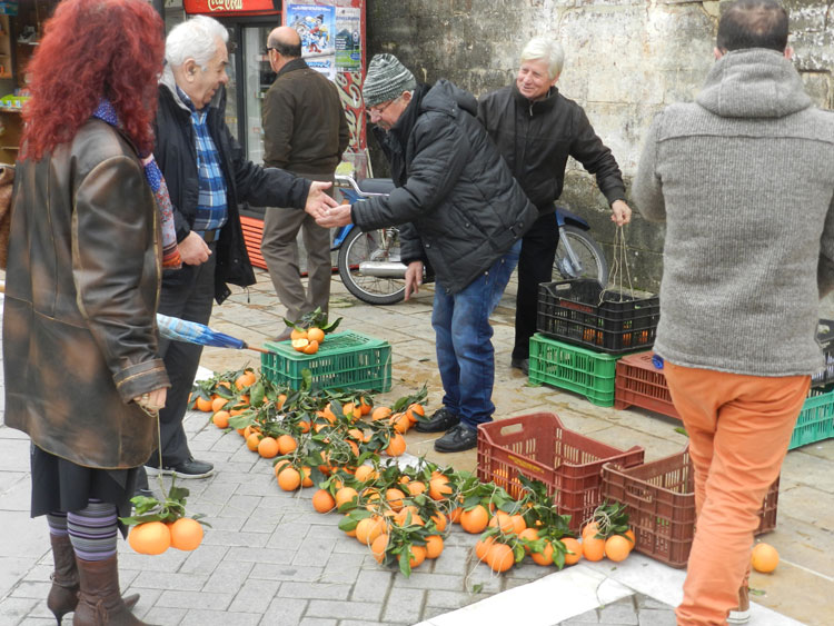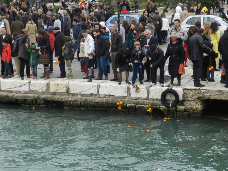 Στη συνέχεια ακολούθησε η ρήψη των πορτοκαλιών από τους δεκάδες πιστούς που ήταν συγκεντρωμένοι κατά μήκος της παραλίας.