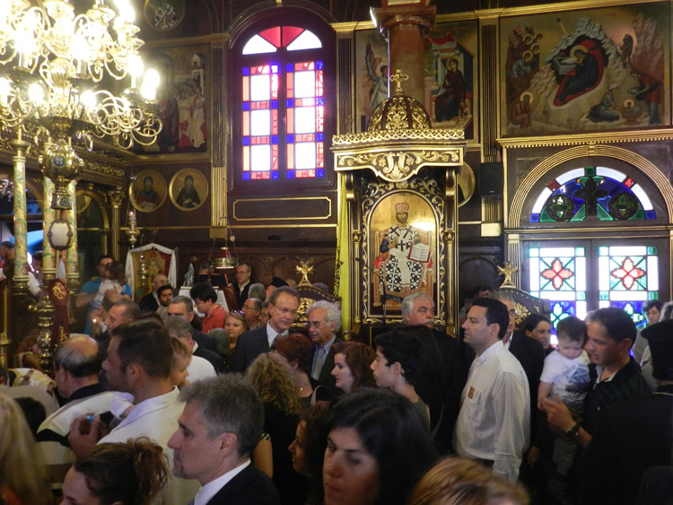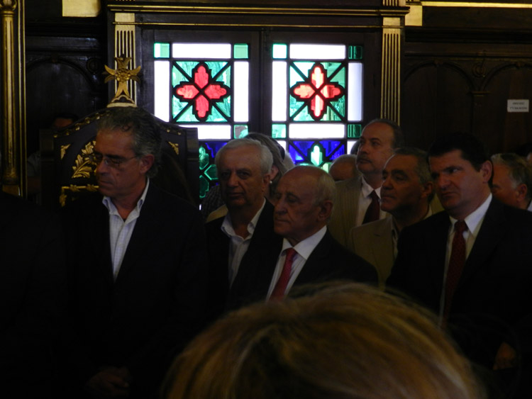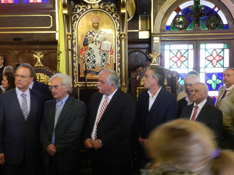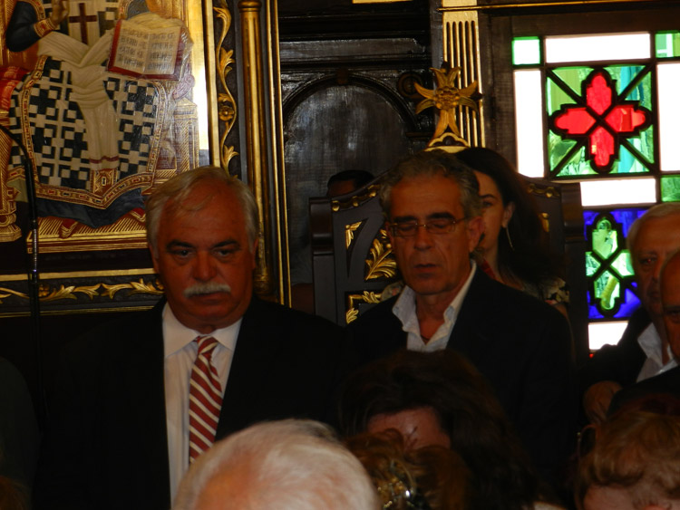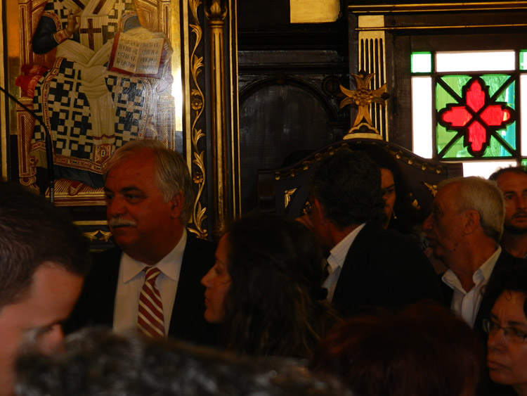 Την πομπή συνόδευαν οι κατανυκτικοί ήχοι της μπάντας της Φιλαρμονικής Εταιρίας Λευκάδας, ο θρησκευτικός κλήρος του νησιού και της υπόλοιπης Ελλάδας, ο Μητροπολίτης Μεσσηνίας κ.κ. Χρυσόστομος, ο Μητροπολίτης Μαρωνείας & Κομοτηνής κ.κ. Παντελεήμων και ο Μητροπολίτης Λευκάδος & Ἰθάκης κ.κ. Θεόφιλος, πλήθος πιστών και εκπρόσωποι της πολιτικής ηγεσίας του νησιού, μεταξύ των οποίων ο Περιφερειάρχης Ιονίων Νήσων Σπύρος Σπύρου, ο Βουλευτής Λευκάδας Θοδωρής Σολδάτος, ο νυν δήμαρχος Λευκάδας Κώστας Αραβανής , ο διοικητής του ΟΓΑ Ξενοφώντας Βεργίνη, ο αντιπεριφερειάρχης Λευκάδας Θοδωρής Βερύκιος,ο νέος Δήμαρχος Λευκάδας Κώστας Δρακονταειδής και ο νέος Αντιπεριφερειάρχης Λευκάδας Θοδωρής Χαλικιάς.