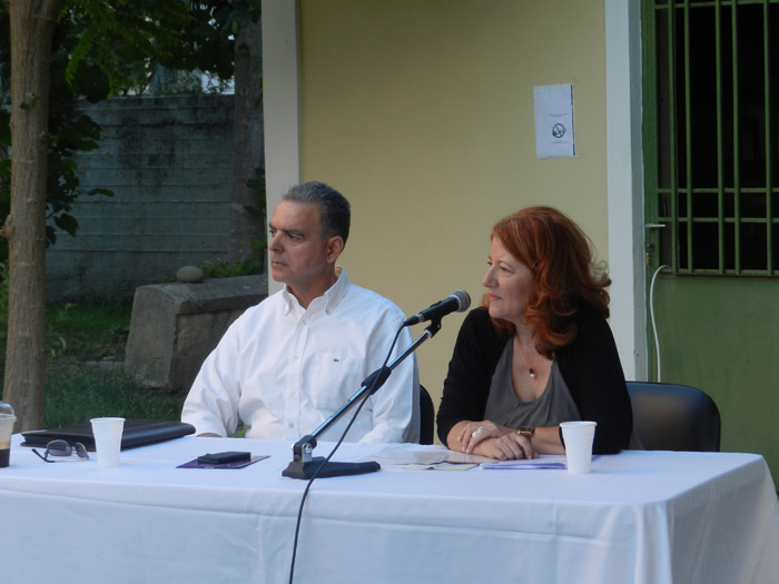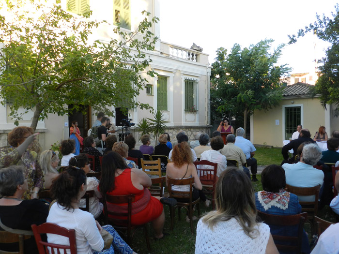 Η κα Χαρά Σαϊτη, μίλησε όχι ως εικαστικός, αλλά ως συντονίστρια της μη χρηματοδοτούμενης τοπικής κοινότητας Περατιάς ΠΕΛΙΤΙ, που στόχο έχει την συλλογή, διατήρηση και διάδοση των ντόπιων ποικιλιών καθώς και την δίχως χρήματα ανταλλαγή αγαθών και υπηρεσιών. (www.peliti.gr). Η κα Σαϊτη, αναφέρθηκε στο ήθος της προσφάτως αδικοχαμένης Εύης Βουτσινά , την οποία γνώρισε , όταν η ίδια επισκέφτηκε το κτήμα της στην Περατιά, καθώς αναζητούσε πάντοτε αγνούς τόπους παραγωγής προϊόντων. «Πρέπει να γυρίσουμε στην αλήθεια που έχουν τα πιάτα της αγίας καθημερινότητας», έλεγε πάντοτε . Για αυτό η κα Σαϊτη προέτρεψε όλους να στραφούν στην υποστήριξη των ντόπιων προϊόντων, εάν θέλουν να πάνε κόντρα στο ρεύμα της παγκοσμιοποίησης και της αλόγιστης παραγωγής προϊόντων , κάνοντας χρήση μεταλλαγμένων, προκειμένου να επιτυγχανθεί το μέγιστο δυνατό κέρδος σε βάρος της υγείας των καταναλωτών.