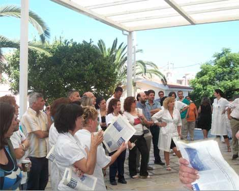 Κατά τη διάρκεια της τετράωρης στάσης, η οποία πραγματοποιήθηκε στον προαύλιο χώρο του Νοσοκομείου, συζητήθηκαν τα θέματα που αφορούν στην διασφάλιση του Δημόσιου και Δωρεάν χαρακτήρα του Νοσοκομείου καθώς και στην απόσυρση της πρότασης Λιαρόπουλου, σύμφωνα με την οποία προτείνεται η μετατροπή του Νοσοκομείου σε Κέντρο Υγείας Αστικού Τύπου, με ότι αυτό συνεπάγεται, τόσο για τους εργαζόμενους όσο και για τους πολίτες.