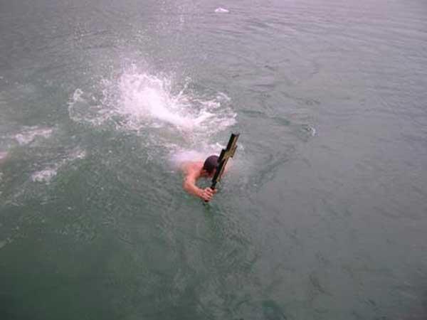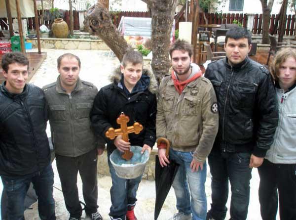 Δύο θαρραλέοι νεαροί αγνοώντας το κρύο και την βροχή, βούτηξαν στα παγωμένα νερά για να πιάσουν τον Σταυρό. Πρώτος έπιασε τον Σταυρό ο Άρης ο οποίος πιάνει το Σταυρό τα τρία τελευταία χρόνια.