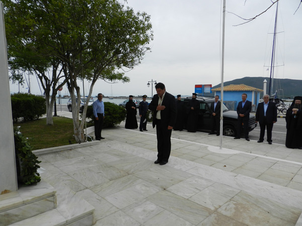Ακολούθησε η κατάθεση στεφάνων στο Ηρώο των Πεσόντων, η οποία υπό την απειλή της ενδεχόμενης ισχυρής βροχόπτωσης που ο ασχημος καιρός προμήνυε ολοκληρώθηκε εσπευσμένα.